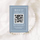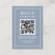 De här eleganterna, konst deco stil dammiga blå bröllop-djurutrymmena är ett enkelt sätt för dina gäster att få OSA till ditt evenemang. Du kan inkludera en skannerbar QR-kod samt din bröllop-webbplats så att dina gäster kan svara på ett enkelt sätt. Inmatningskortet i bröllop har ett ornat, vitt geometriskt ram och prydnadsföremål för ett dramatiskt utseende i vintage bröllop.