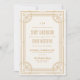Denna moderna bröllopsinbjudan har en djärv, Art Deco-inspirerad ram.