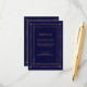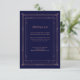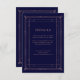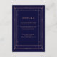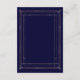 Dessa glamorösa bröllop-gästkort har en modern centrifugering på klassisk konsthandling. Ett ornat, faux ro guld ser geometriskt ut ram och dekoration dekorerar en elegant mörk marin blå bakgrund för ett dramatiskt utseende, vintage bröllop. Du kan använda dessa kort för köranvisningar, mottagnings- eller transport-information, hotell- eller inkvarteringsinformation och alla andra bröllop-uppgifter som du behöver dina gäster för att veta.