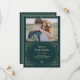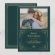 Dessa glamourösa bröllopskort som sparar datumet har en modern twist på klassisk art deco. En utsmyckad, falsk champagne-guld geometrisk ram och ornamentik dekorerar en elegant smaragdgrön bakgrund med ert favoritfoto för en dramatisk, vintage bröllopslook.