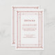 Dessa glamorösa bröllop-gästkort har en modern centrifugering på klassisk konsthandling. Ett ornat, festivt rött geometriskt ram och dekoration dekorerar en mycket ljusvit silver/vit elegant för ett dramatiskt utseende i vintage bröllop. Du kan använda dessa kort för köranvisningar, mottagnings- eller transport-information, hotell- eller inkvarteringsinformation och alla andra bröllop-uppgifter som du behöver dina gäster för att veta. Perfekt till eleganten jul i helgdag bröllop.
