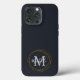 Elegant och modernt telefonfodral. Coola monogram som finns i guld ringar i lager på djup kolbakgrund.