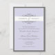 Traditionell men ändå contemporary är fokus för denna vackra bröllopsinbjudan. Mjuk lila som gränsar till vitt och kol-grått utgör grunden för denna inbjudan. En vit panel lyfter fram honungens namn med en dekorativ dekorativ dekoration upptill och grund. Finns i alternativa färger med matchande produkter.