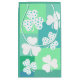 En liten presentväska i personlig, med en modern abstrakt dekorativ utformning i grönt, till heder för Saint patrick's day.