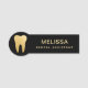 Create a polished, professional look with this modern dental assistant name tag, featuring a sleek black background and a striking gold tooth design.