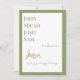 Modern design. Stora första namn. Foto på baksidan. Moss grönt gräns. Gräs och guld löv. Glad helg.