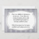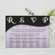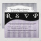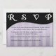 Detta moderna svarskort kommer säkert att imponera på alla på din inbjudningslista med sin iögonfallande design. Stora textområden på fram- och baksidan gör att du kan ha alla detaljer i dina gästers händer. Färgtemat för denna design kan enkelt ändras genom att välja bakgrund (via alternativet "Redigera") och välja den färg du vill ha. Om du föredrar det finns det en annan version av denna design med guldbokstäver i sidhuvudet.