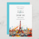 Modern Bold Destination Wedding Paris Eiffel Torn Frankrike Inbjudan, vattenfärgillustration/målning
