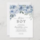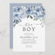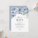 Modern Dusty Blue Blommigt Watercolor Det är en pojkbabyinbjudan