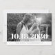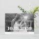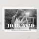 Bröllop "Spara datum" 5x7 Horisontell kort med en enkel, modern typografisk design med trendig stor fet serif-teckensnittsdatum-överlägg ovanpå ditt foto som du laddar upp till mallen och skriver in era namn och bröllopslokal och datum för en snabb och enkel design som fungerar med vilket tema du än väljer senare. Bakgrundsfärger och teckensnitt kan redigeras för att matcha ditt färgschema, och du kan lägga till mer information eller ytterligare foton på baksidan.