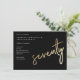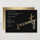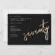 Modern minimalist 70:e födelsedagsfest inbjudan har handskript för snyggt faux guld-folie sjuttio och dina party-detaljer i klassiskt serif-teckensnitt på svart bakgrund färg, enkel och elegant, underbar vuxen, delfödelsedagsinbjudning för manar och kvinnor. Den svarta bakgrunden färg kan ändras till valfritt färg.
