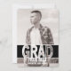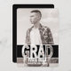 Modern djärv tillkännagivande för studenten. Djärv typografi med svartvit bokstäver, ändrar färgen av baksidaen, visar dina gradss personlighet med detta blom- studentenmeddelande för trycket. Skräddarsy texten med din student namn, skola och studentenår, tillfoga ditt foto, och du göras! För extra studentenmeddelandedesign behar alternativ kontrollen ut vår akademikra samling på MetroEvents på Zazzle.
