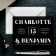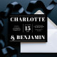 Imponera dina gäster med den här moderna och djärva bröllopsinbjudan med en slående vågrät. Utformningen visar ren vit typografi som ställs in mot en slimmad svart bakgrund, som ger en contemporary men ändå tidlös estetik. Perfekt för par som uppskattar minimalistisk elegans, ser den här inbjudan till dig att se till att dina uppgifter om bröllop visas på ett tydligt och sofistikerat sätt. Dess djärva och moderna stil är början till ett minnesvärt firande.