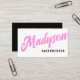 Gör ett snyggt-intryck med ditt namn i ett stort fet, minimalistiskt affärskort för skript. Anpassa med ditt namn och din titel på framsidan (om du har ett namn med få brev, lägg till den första början av ditt efternamn för att fylla i utrymmet) - lägg till kontaktinformationen på baksidan. Du kan ändra färg och teckensnittet stil i avsnittet Redigera med Design Verktyg i avsnittet Anpassa den här mallen. En del av en samling. Om du vill ha ytterligare matchande marknadsföring-material kan du skicka ett e-postmeddelande till mig på themarisuvalencia@gmail.com eller ett meddelande via Zazzle chatta. Ursprunglig utformning av Marisu Valencia.