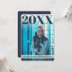 Det här moderna lodrät har ett foto av din grad på framsidan, övertäckt med ett frostiskt vitt pub vid grund, där du kan läsa anpassningsbar om namn och skola i ställe. Anpassa kant överst med anpassningsbarna studenten-år - använda bara de enkla, tillhandahållna mallar som du kan anpassa. En vit övertoning med blek ligger bakom året och visar siffrorna så att de blir lättare att läsa. Baksidan har en kvadrat ram i mitten av fält i midnattblått - ställe er andra bild här. (Fyrkantiga bilder fungerar bäst). Fyll i kortet med mer text - detaljer om student och deras framtida planer eller kanske studenten-ceremoni eller närmare uppgifter om party. En ren och modern design.
