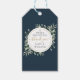 Modern djupblå grönska vinterbröllopsgåva presentetikett