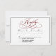 Sofistikerat och elegant, detta moderna svarta, vita och djupröda skript bröllopsvarukort koordineras med vår Faith Hope and Love bröllopsserie av inbjudningar och tillbehör. Designad av Natalie Schorr för Graphic Suite på Zazzle.