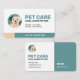 Ett modernt affärskort för djuromsorga tjänster och hund. På designens framsida visas en logotyp av hund, namn, slogan, tjänster och mobilt nummer. På baksidan av designen finns all kontaktinformation och mediehandtaget för social.