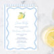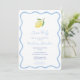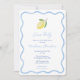 En färsk och enkel citrusbabyduschinbjudan med en vit hand plockade-bläckfisk gräns och en citron. På motsatt sida finns ett blått och vitt smalt rand mönster, ge en nod till italienska Riviera.