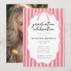 Modern Doodle Handritad Båge Examen Inbjudan - Meddela din examen med vår rosa randig inbjudan med handskriven skrift och modern typografi. Du kan enkelt byta vårt foto till ditt barns foto på baksidan av inbjudan.