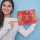 Drake och Fenix används alltid för bröllopsfirande i kinesisk kultur. Draken är symbolen för manlig vitalitet och fertilitet medan Fenix är Yin-prakt och kvinnlig skönhet när den placeras bredvid draken. Tillsammans symboliserar det ett fruktbart äktenskap välsignat med framgång, välstånd, harmoni och lycka. På detta bröllopskort håller Fenix och Drake ett porslinsfat-mönster där en dubbel lyckosymbol är placerad i mitten med lyckliga färger röda och guld. Vänligen anpassa det med din egen text/detaljer för tillfället och välj ditt önskade pappersval.