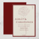 Modern Drawn Blommigt Crimson Red Bröllop Inbjudningar