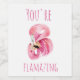 Modern du står inför Rosa Flamingo Vinflaska Etikett