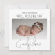 Be din bästa vän, bror eller kusin att bli din babys gudfar med detta vackra minimalistiska 2-sidiga fotokort, Med en söt bild på din baby, som ställer frågan och på baksidan en annan bild med ett mallmeddelande, teckensnittsstilarna och bakgrundsfärgen kan ändras genom att klicka på länken Anpassa ytterligare efter att ha anpassat.