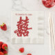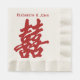 Denna moderna Dubbla Happiness Napkins består av "dubblans lycka" på kinesiska i rött glitter och anpassade namn.