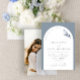 Modern Dusty Blue Arch Botanical Photo Bröllop Inv Inbjudningar