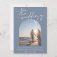 Modern Dusty Blue Arch - inbjudan till fotobröllop. Imponera elegant på dina gäster i bröllop med den här moderna, pulverblåa bröllopsinbjudan med en snyggt på framsidan, som du kan anpassa med parets bröllop-foto efter ditt val, och vackert, vitt skript initialer ovanför ett större foto av paret, på baksidan av bröllopsinbjudningen. Det här bröllopet inbjuder ge till en elegant, minimal vibe-perfekt för vilket modernt, minimalistiskt bröllop som helst. Den vackra och elegant layouten uppmärksammar snyggtens fotobåge, som sedan upprepas på inbjudets baksida, åtföljt av parets elegant initialer. Den här bröllopsinbjudan kommer att ange tonen för en modern, elegant dammig blå bröllop omgiven av baby blue dekoration i bröllop och matcha vita blommor eller neutralter. En perfekt som komplement till ett modernt, minimalt bröllop firande. Söndag Collective © av Rachel Hannah Gee