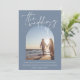 Modern Dusty Blue Arch Initial Photo Bröllop Inbjudningar