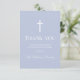 Simple and modern baptism thank you card featuring a dusty blue background and white cross design. Perfect for sharing gratitude after your special day. Easily personalize with your own message.