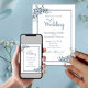 Den moderna Dusty Blue Wedding-inbjudan är ett klassiskt val för snyggten. I den moderna ordalydelsen finns ett kalligrafiskt skript som belyser typografin. För att fylla det hela har den en ram och dammig blå blommigt.