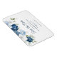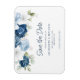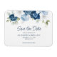blommigt av elegant, dammig blå, vit och marin blommigt buquet bröllop spara datum magnet. Kortet innehåller ett skript "Spara datumet" som kan ändras till en typsnittstyp som du väljer och som är tillgänglig här när du klickar på knappen "Anpassa".