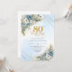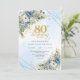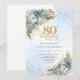 Modern Dusty Blue Floral Gold 80th Birthday Deluxe Inbjudningar