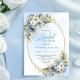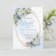 Modern Dusty Blue Flowers Gold Frame Bridal Shower Inbjudningar
