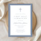 Modern Dusty Blue Kor Boy First Communion-inbjudan.