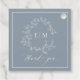 Modern Dusty Blue Leafy Vapensköld Monogram Bröllo Gåvor Etiketter