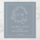 Modern Dusty Blue Leafy Vapensköld Monogram Bröllo Vinflaska Etikett