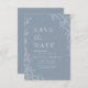 Modern Dusty Blue Minimal Leafy Bröllop Spara Datumet