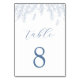 Det här charmerande bordsnumret innehåller en liten kaskad av bra blå botaniska illustrationer som fäster överst och skapar ett underbart ram. Textskriptet för eleganten kompletterar den rensa, fetstil numreringen nedan. Den skarpa vita bakgrunden parad med de mjuka blåtonerna ger en frän och mejerikänsla, perfekt för en sofistikerad men ändå naturlig estetik.