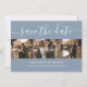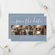 Anpassningsbarnas moderna dammiga blå bröllop-fotokollage sparar datumkorten med 4 bilder och ett modernt skript. Anpassa enkelt den här snyggtens foto till bröllop spara datum med information om bilder och bröllop, inklusive en webbplats för bröllop. Matchande objekt är tillgängliga.