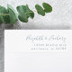 Modern Dusty Blue Script Bröllop Returadress Etikett