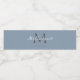 Modern Dusty Blue Script Monogram Bröllop Vattenflaskor Etikett