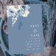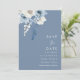 Modern Dusty Blue & White Blommigt Bröllop Spara Datumet