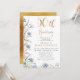 Modern Dusty Blue Wildblommor 50-årsjubileum Inbjudan Modern blå och vita vilda blommor 50-årsjubileum med en underbar arrangemang på kammusslan vid sidan och vid basen och faux guld. Baksidan av inbjudan är också en faux guld-folie.