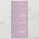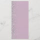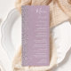 Den moderna bröllop-menyn på den lämnat kant i eleganten har en silver faux glitter-design. I anpassadet kombineras vit handskrift, tryckplåt och kursivt typsnitt på en dammig lila bakgrund. Den omvända sidan har en matchande dammig lavender- och silver glitter-design.
