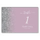 Det moderna bordsnumret bröllop i elegantens lämnat kant har en silver faux-utformning från glitter. I anpassadet kombineras vit handskrift, tryckplåt och kursivt typsnitt på en dammig lila bakgrund.