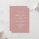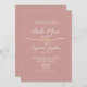 Den här dammiga bröllopsinbjudan till ro är enkel än elegant och innehåller en modern minimalistisk layout med ett guld-rep-hjärta och ett känsligt kalligrafiskript för parets namn. Den romantiska bakgrunden är en mjuk, sofistikerad ton för din speciella dag. Perfekt för chic, contemporary eller bröllop med neutralt. Anpassade enkelt med namn, datum, plats och formulering för bröllop.
